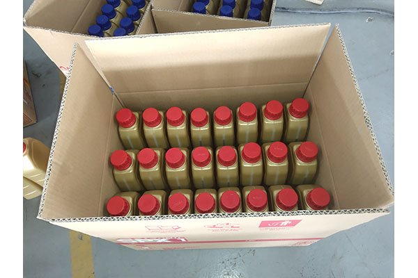 润滑油装箱包装线主要是实现对润滑油桶、瓶进行装箱的过程,该线体最大的特点为:兼容的瓶型多、伺服分道的数量多,快接式抓手更换方便。