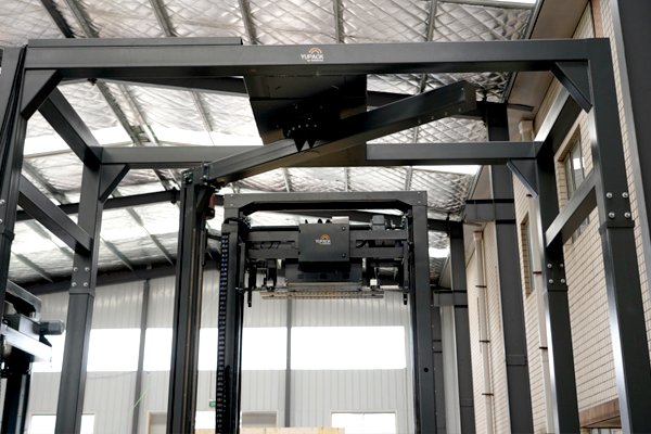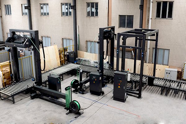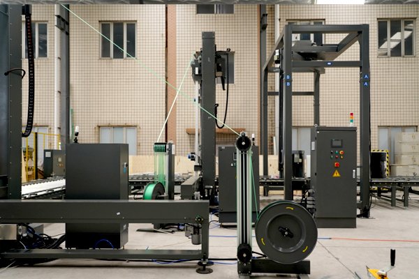 进行捆扎方式让包装物与托盘的固定更加紧密,为兼容不同的托盘宽度,选用了拂膜方式的摇臂缠绕机,大小托盘均可兼容,包装效果稳定、效率高。